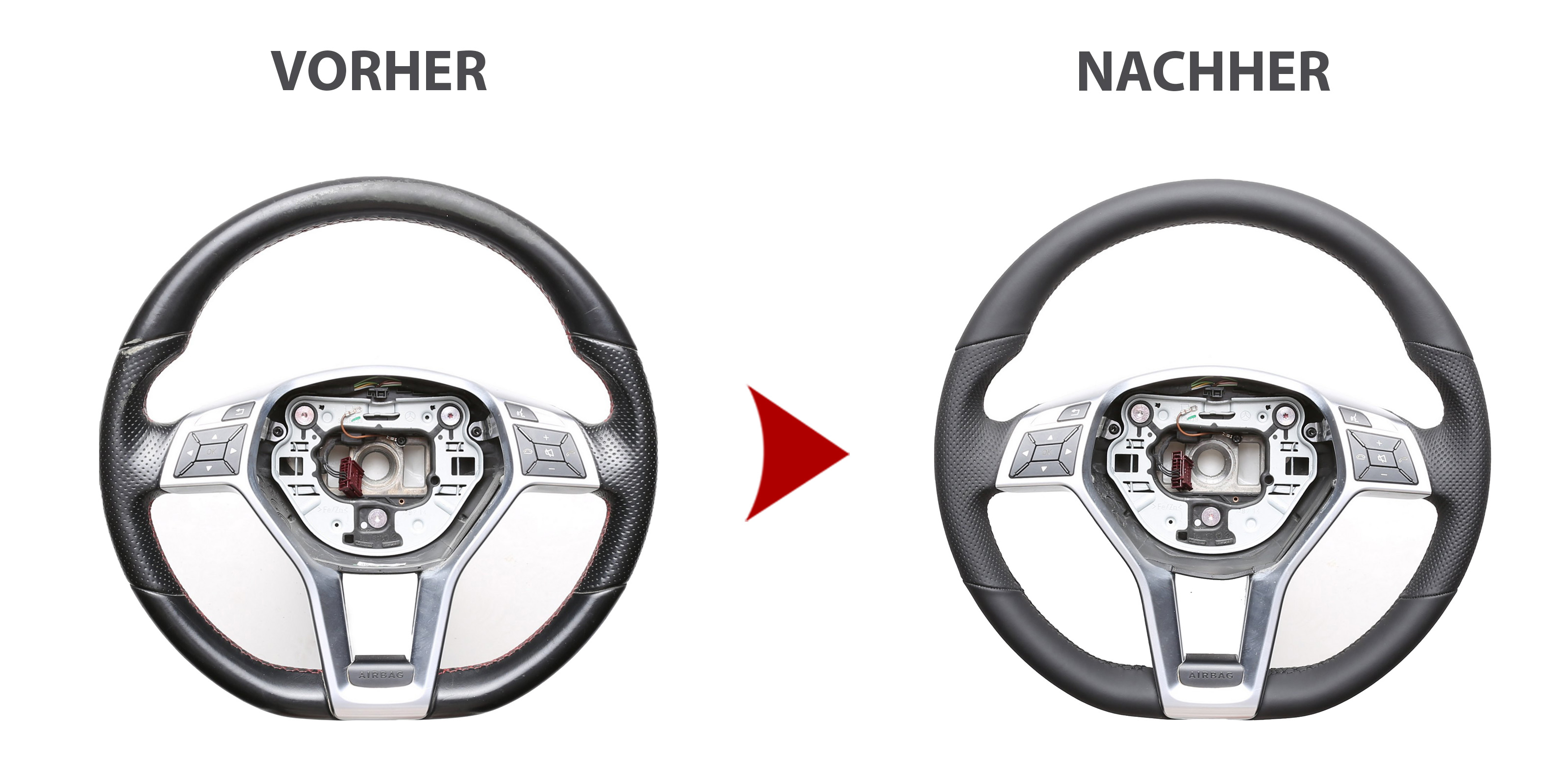 Der Austausch erfolgt ausschließlich gegen ein baugleiches Lenkradmodell. Alle Anbauteile wie Airbag, Multifunktionstasten, Blenden, Schaltwippen oder gar ein Spurhalteassistent übernehmen Sie problemlos von Ihrem Lenkrad. Diese sind nicht im Lieferumfang enthalten.