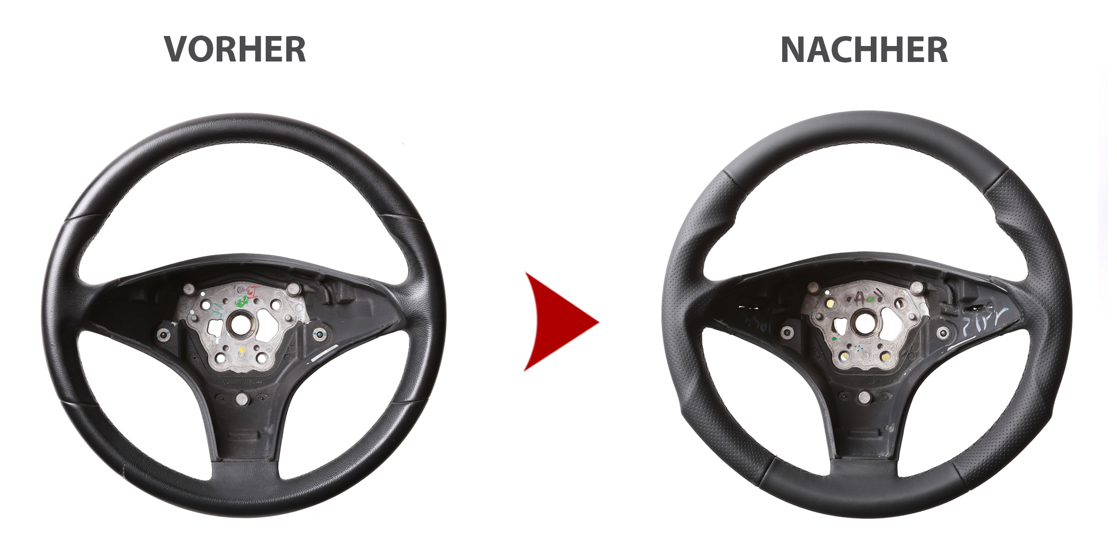 Des Weiteren bieten wir auch den Neubezug Ihres Lenkrades nach Ihren individuellen Vorstellungen bei uns vor Ort an. Sollte es Ihr Lenkradmodell ausnahmsweise nicht in unserem Sortiment geben, dann können wir Ihnen Ihr Lenkrad ausbauen, innerhalb von 4-5 Stunden den Wunschbezug anfertigen und anschließend können Sie wieder nach fachgerechtem Einbau durch uns ohne lange Versandwartezeiten und teure Werkstattbesuche mit Ihrem neu bezogenen Lederlenkrad nach Hause fahren!