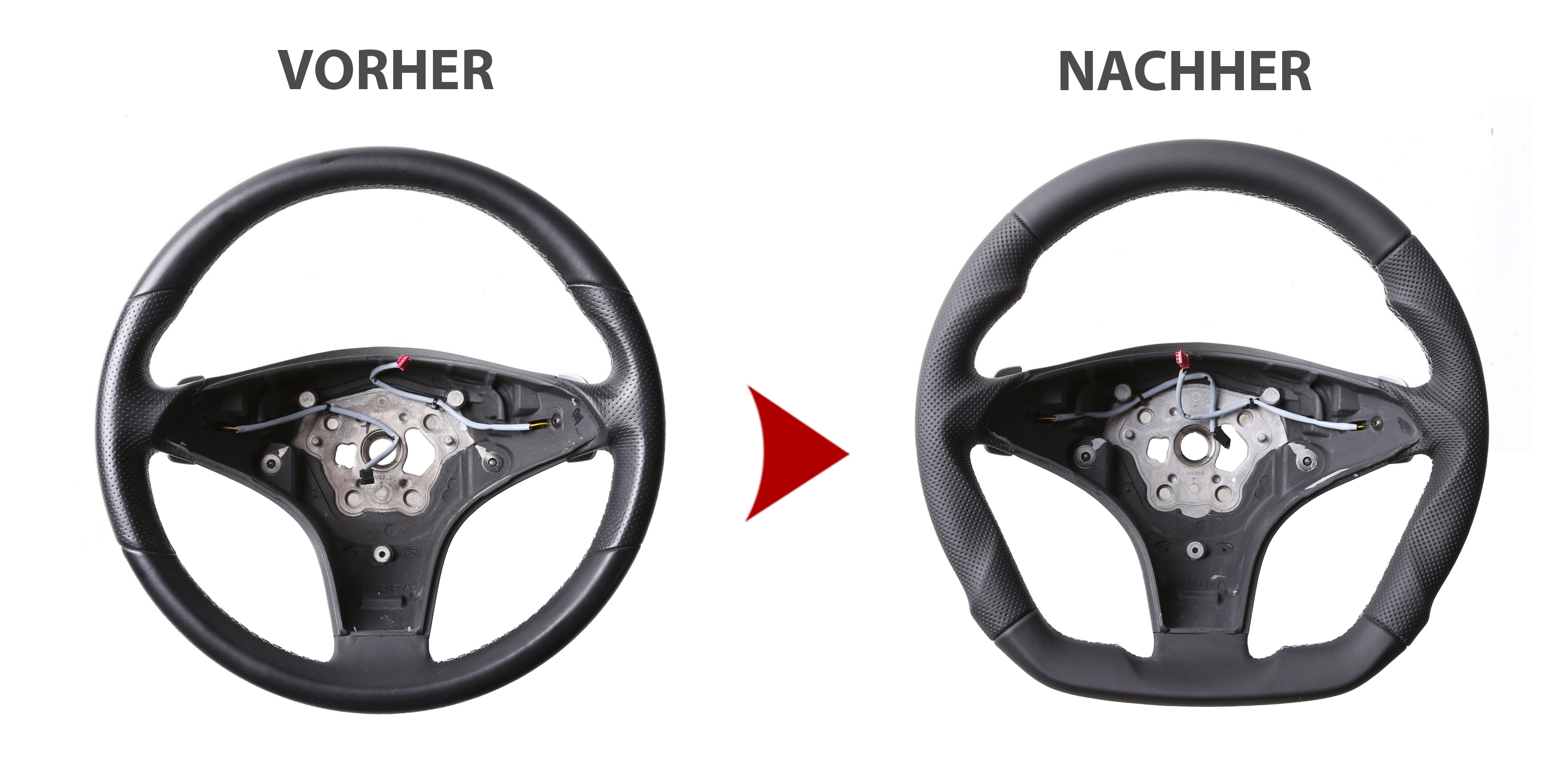 Der Austausch erfolgt ausschließlich gegen ein baugleiches Lenkradmodell. Alle Anbauteile wie Airbag, Multifunktionstasten, Blenden, Schaltwippen oder gar ein Spurhalteassistent übernehmen Sie problemlos von Ihrem Lenkrad. Diese sind nicht im Lieferumfang enthalten.