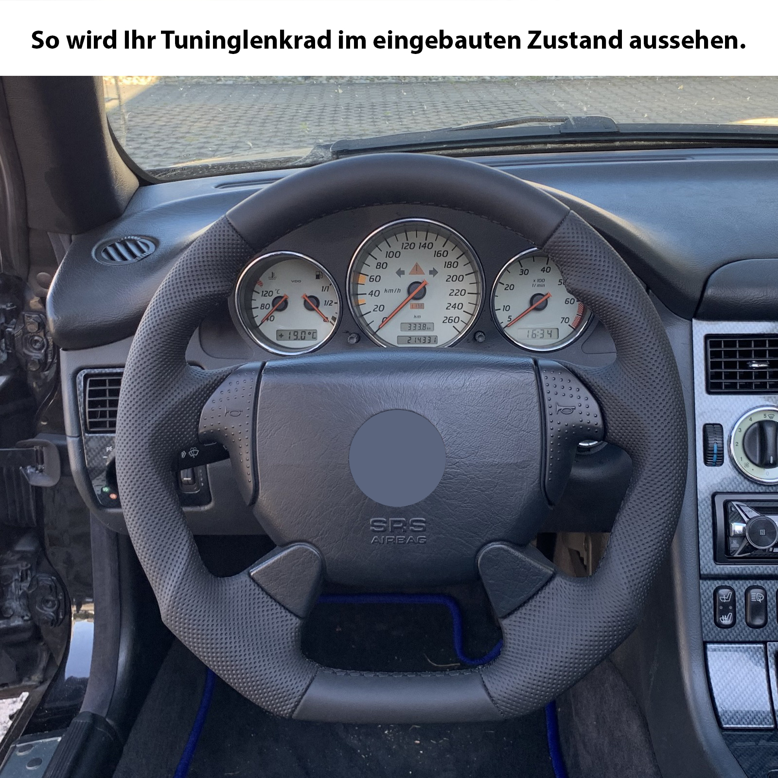 Abgeflachtes Tuninglenkrad mit ergonomischen Griffen. Griffumfang dicker als das Original Lenkrad.