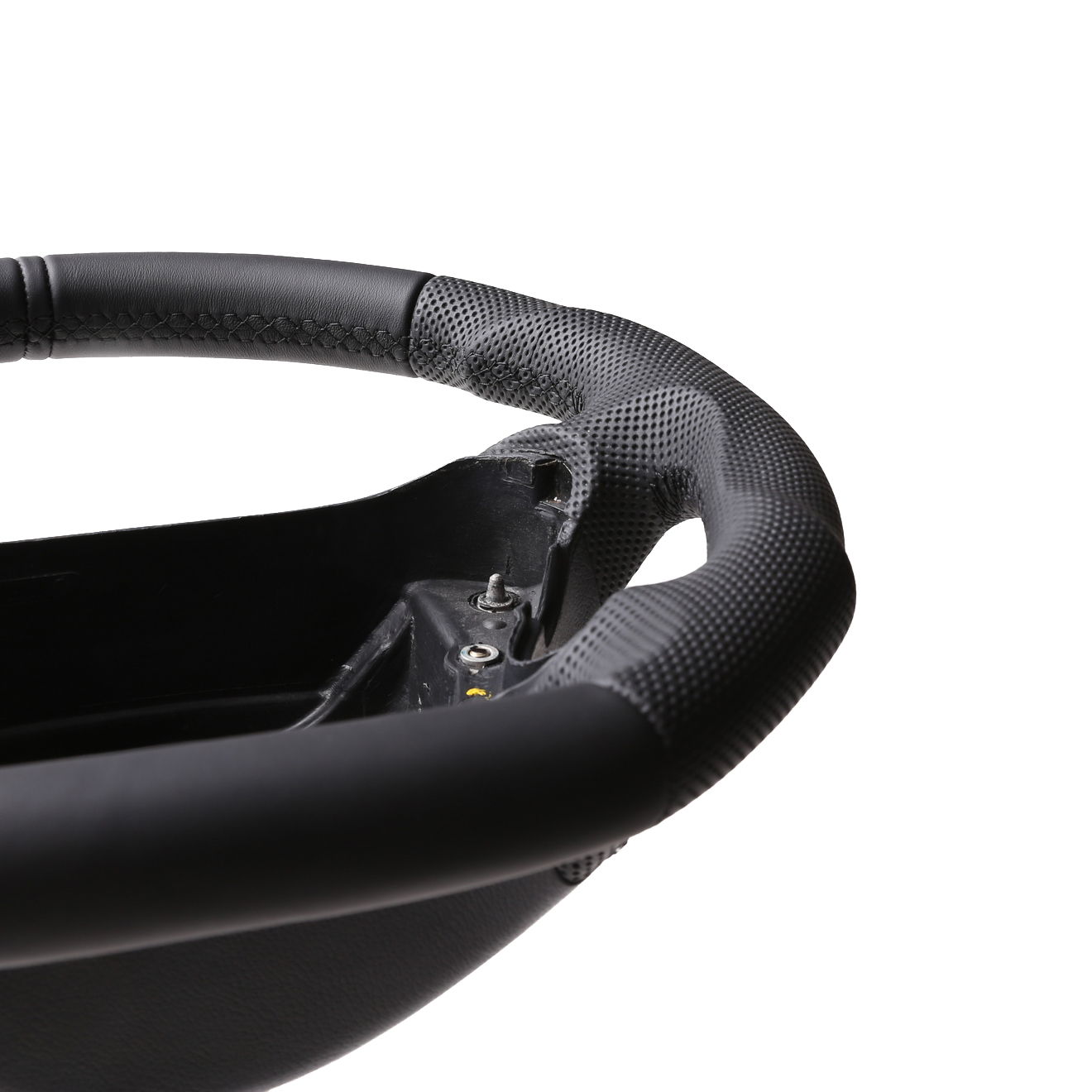 Abgeflachtes Tuninglenkrad mit ergonomischen Griffen für maximale Kontrolle. Griffumfang dicker als das Original-Lenkrad.