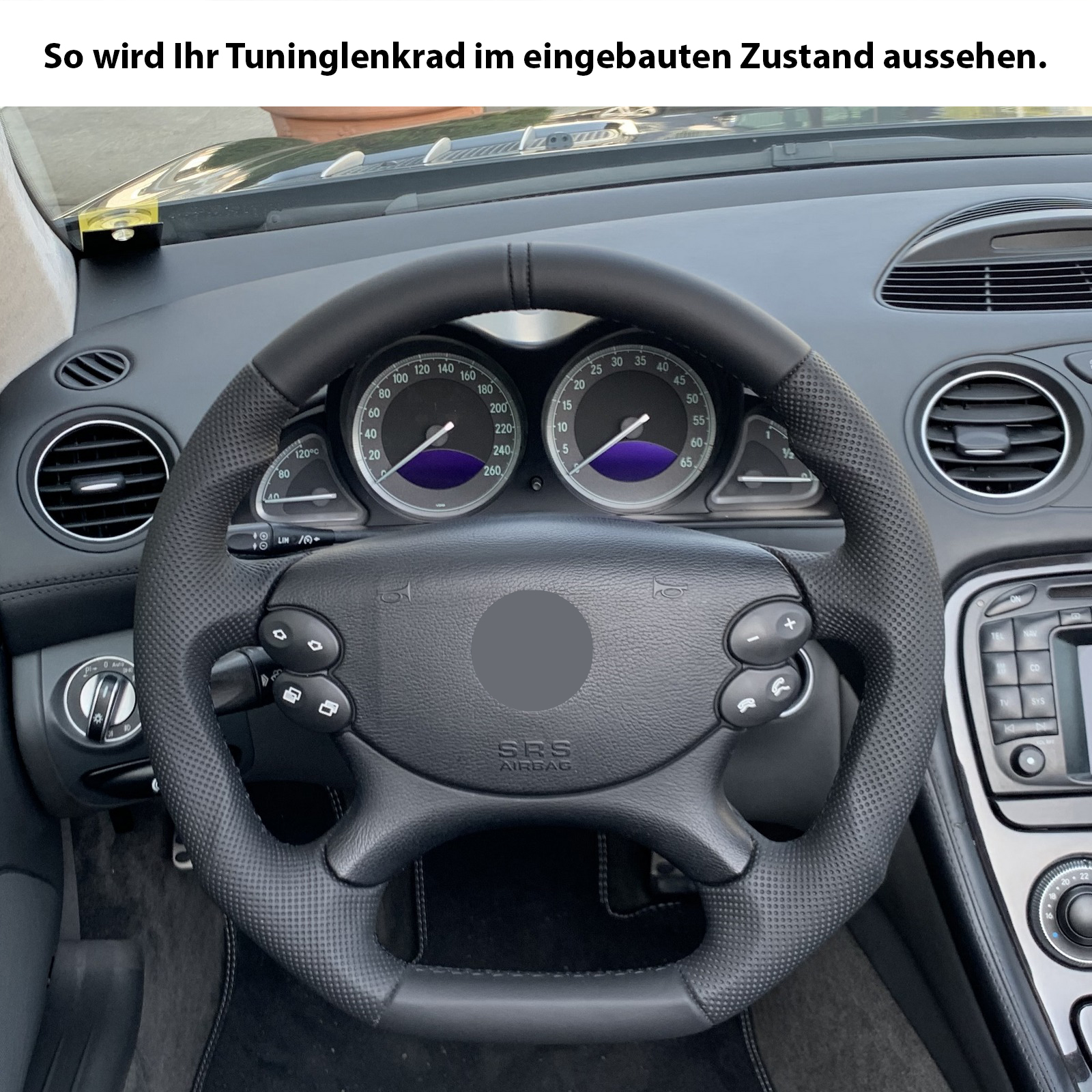 Mercedes Lenkrad R230 W209 W211 Abgeflacht Kombibezug 12 Uhr Markierung schwarz Naht schwarz