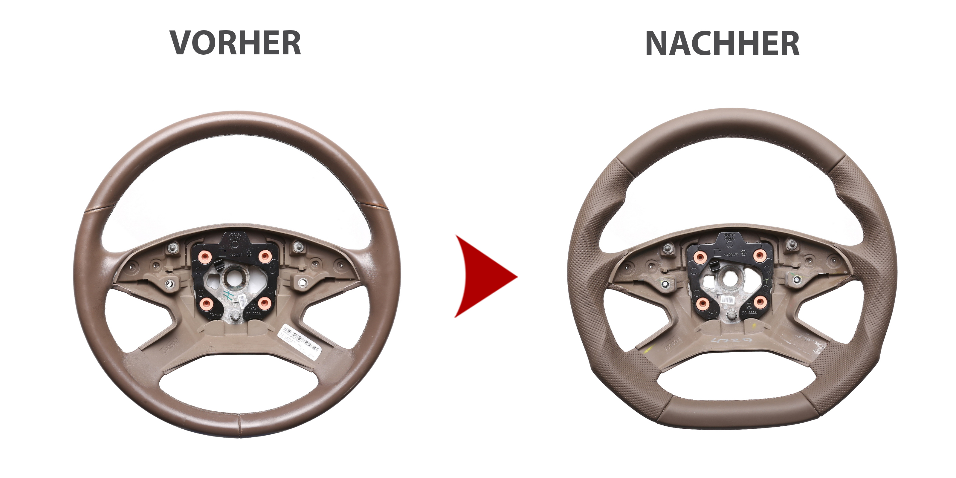 Des Weiteren bieten wir auch den Neubezug Ihres Lenkrades nach Ihren individuellen Vorstellungen bei uns vor Ort an. Sollte es Ihr Lenkradmodell ausnahmsweise nicht in unserem Sortiment geben, dann können wir Ihnen Ihr Lenkrad ausbauen, innerhalb von 4-5 Stunden den Wunschbezug anfertigen und anschließend können Sie wieder nach fachgerechtem Einbau durch uns ohne lange Versandwartezeiten und teure Werkstattbesuche mit Ihrem neu bezogenen Lederlenkrad nach Hause fahren!