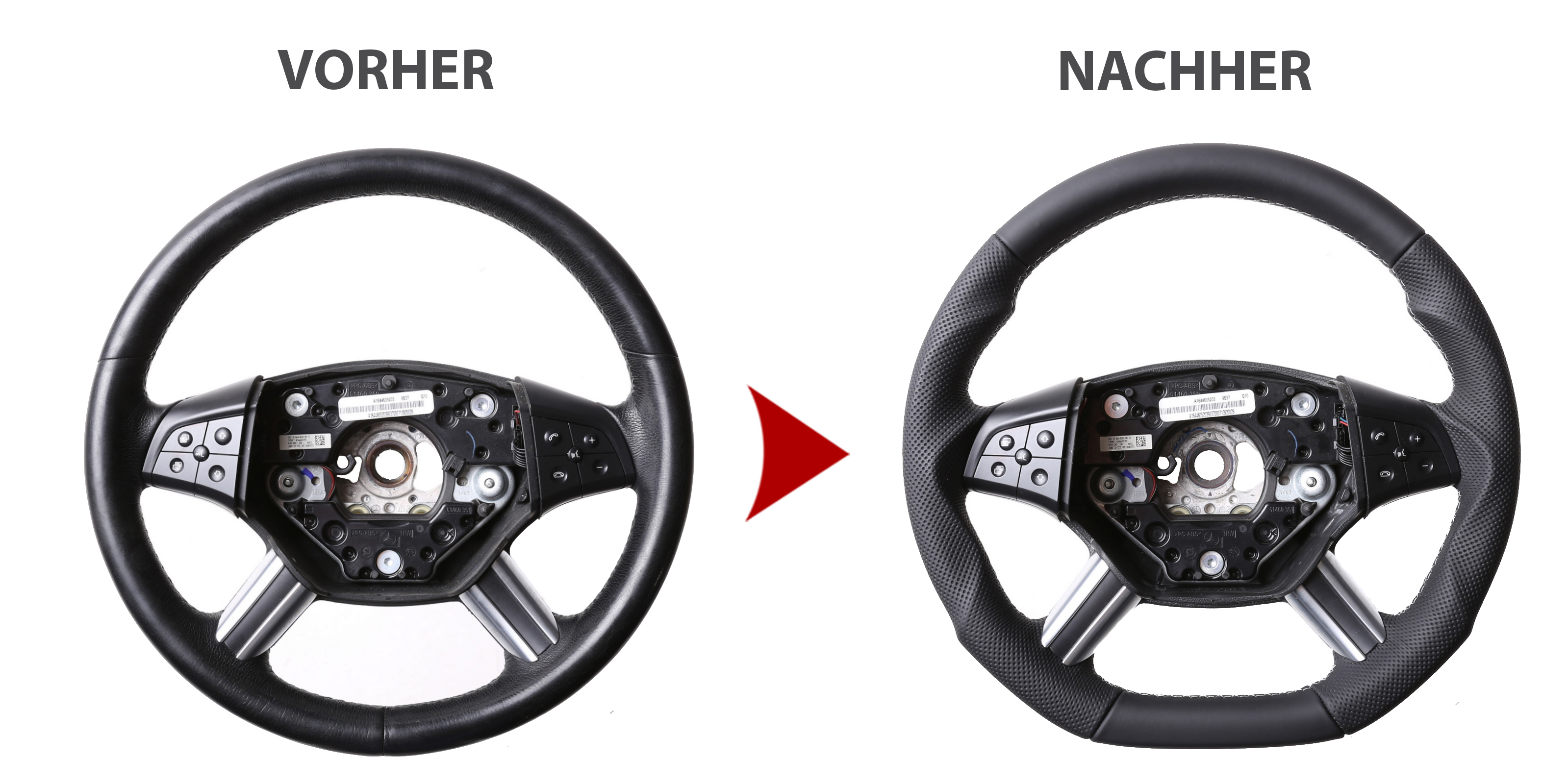 Der Austausch erfolgt ausschließlich gegen ein baugleiches Lenkradmodell. Alle Anbauteile wie Airbag, Multifunktionstasten, Blenden, Schaltwippen oder gar ein Spurhalteassistent übernehmen Sie problemlos von Ihrem Lenkrad. Diese sind nicht im Lieferumfang enthalten.
