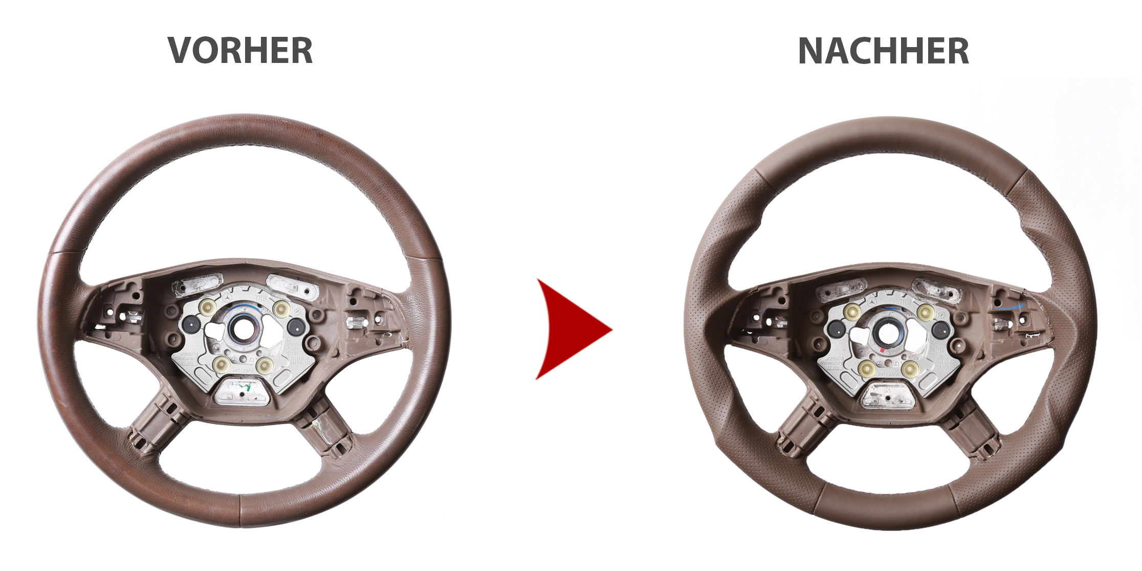 Produktinformationen "Mercedes Lenkrad W164 ML X164 GL W251 R Klasse braun Tuning Kombibezug Naht braun"