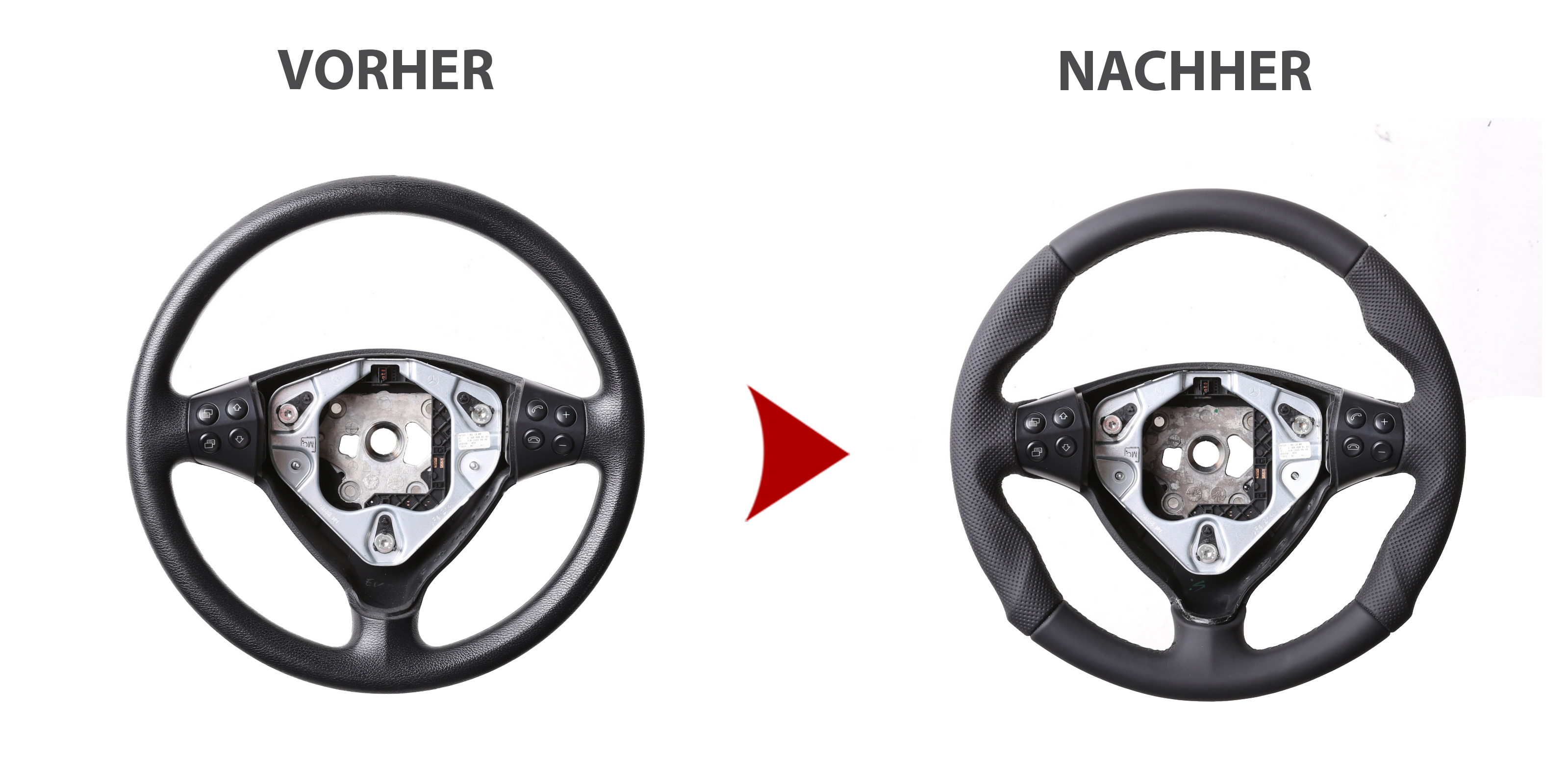 Der Austausch erfolgt ausschließlich gegen ein baugleiches Lenkradmodell. Alle Anbauteile wie Airbag, Multifunktionstasten, Blenden, Schaltwippen oder gar ein Spurhalteassistent übernehmen Sie problemlos von Ihrem Lenkrad. Diese sind nicht im Lieferumfang enthalten.