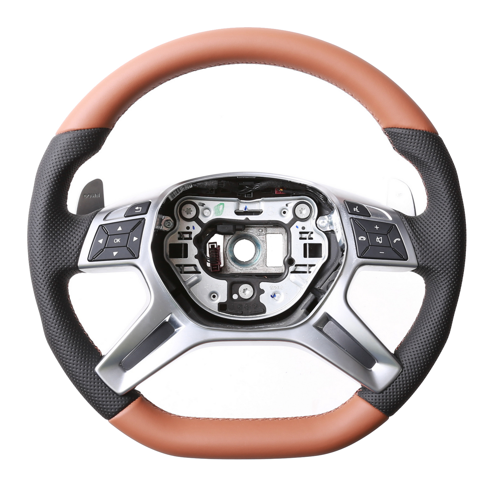 Produktinformationen "Mercedes Lenkrad W204 C Klasse W166 ML X166 W212 W463 Abgeflacht Kombibezug zimt Naht zimt"