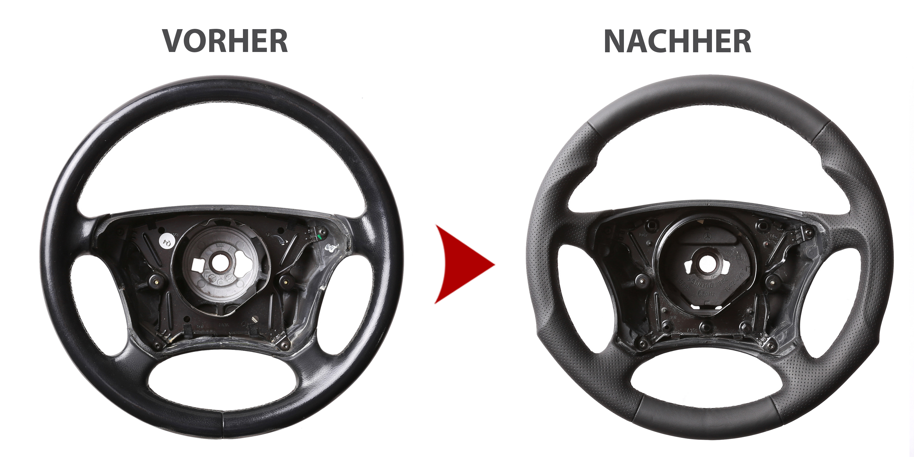 Des Weiteren bieten wir auch den Neubezug Ihres Lenkrades nach Ihren individuellen Vorstellungen bei uns vor Ort an. Sollte es Ihr Lenkradmodell ausnahmsweise nicht in unserem Sortiment geben, dann können wir Ihnen Ihr Lenkrad ausbauen, innerhalb von 4-5 Stunden den Wunschbezug anfertigen und anschließend können Sie wieder nach fachgerechtem Einbau durch uns ohne lange Versandwartezeiten und teure Werkstattbesuche mit Ihrem neu bezogenen Lederlenkrad nach Hause fahren!