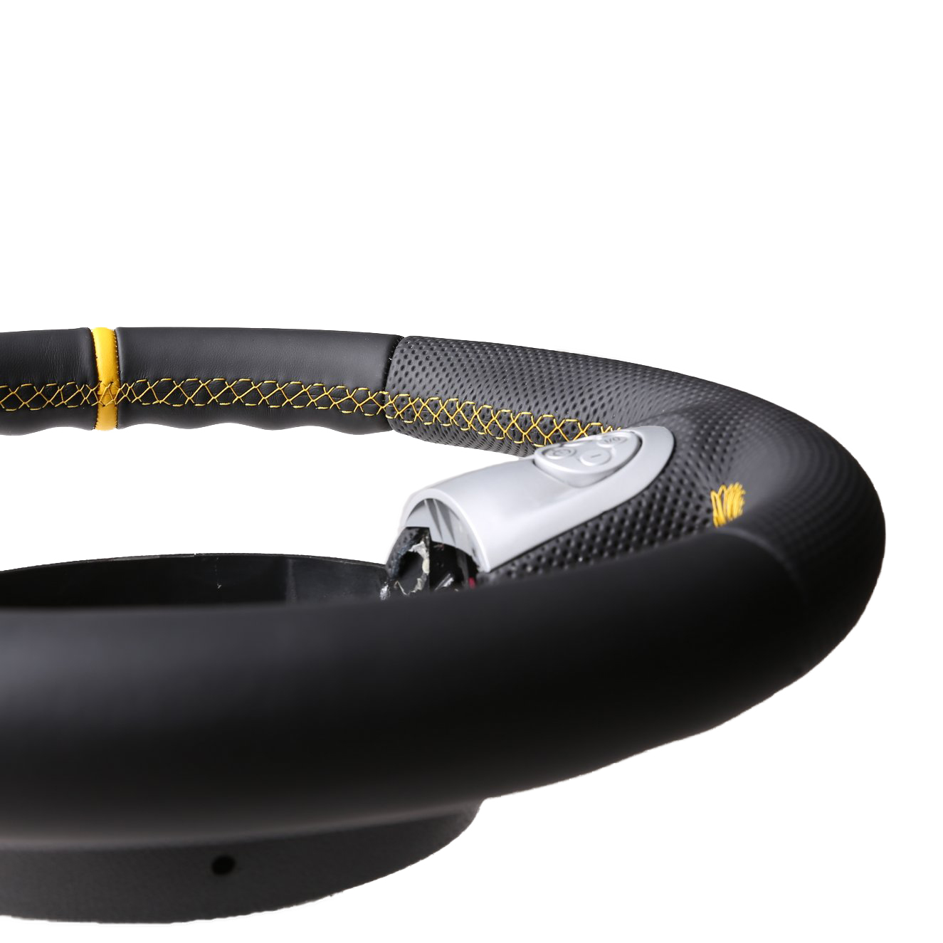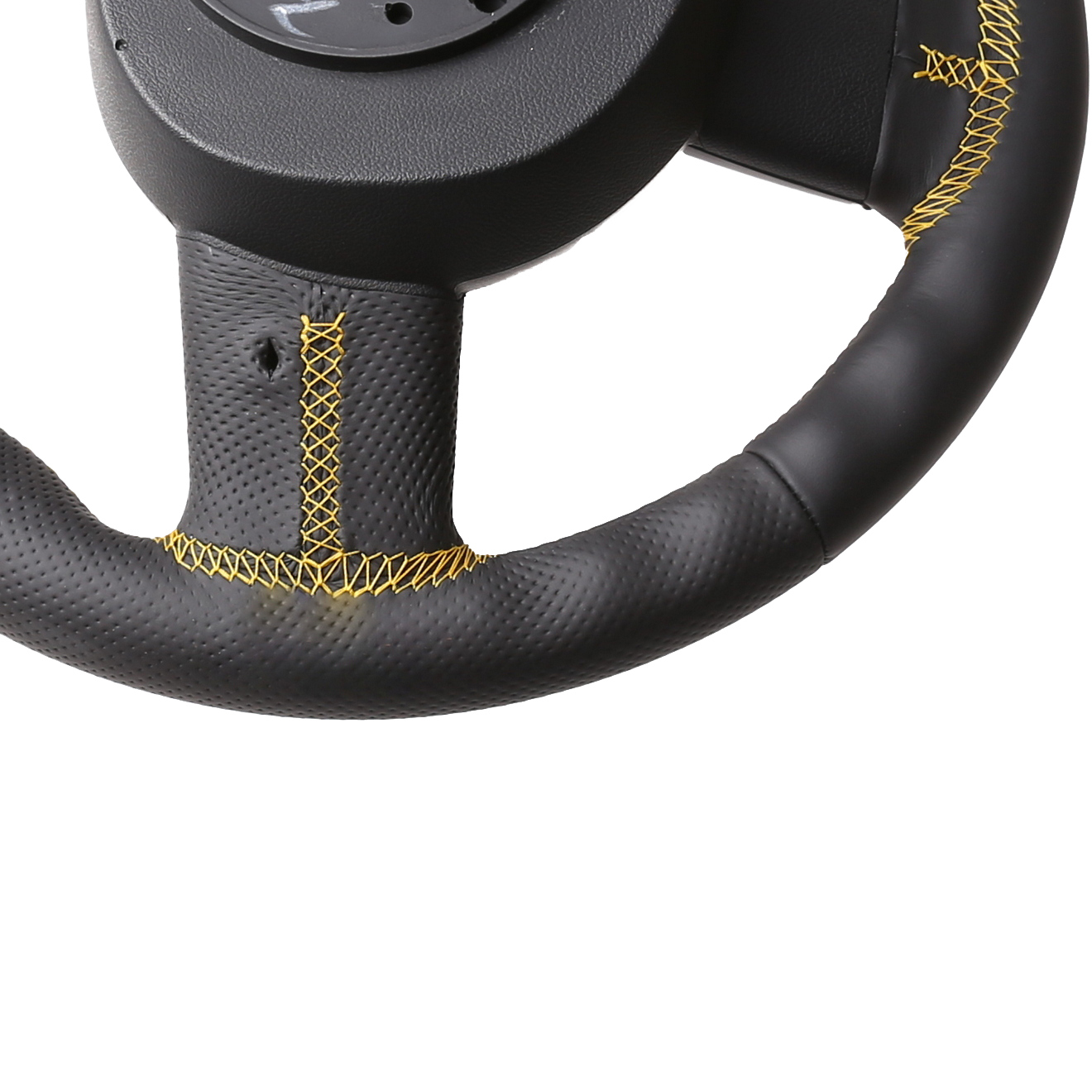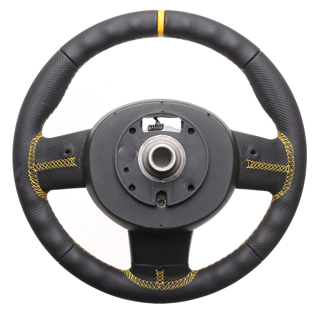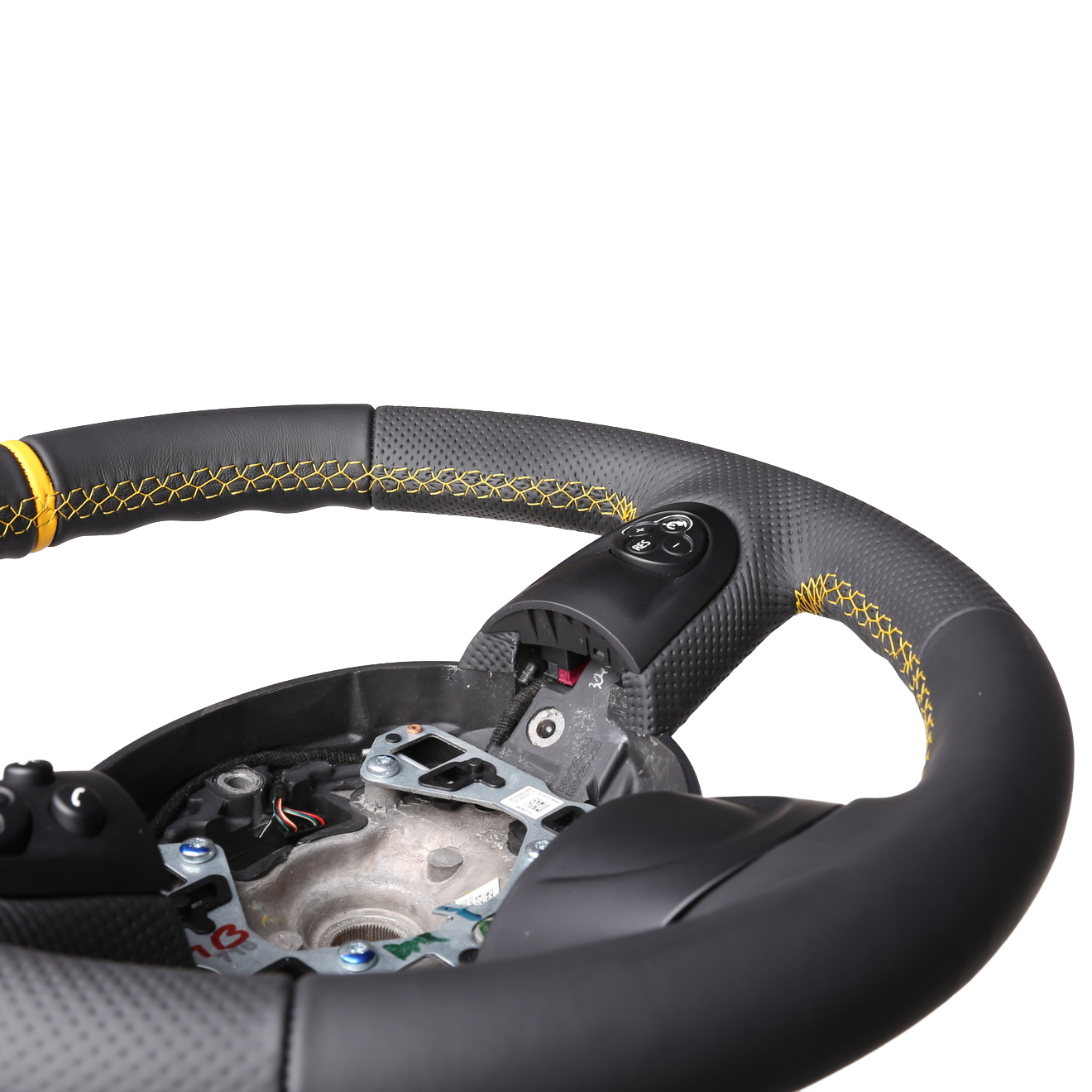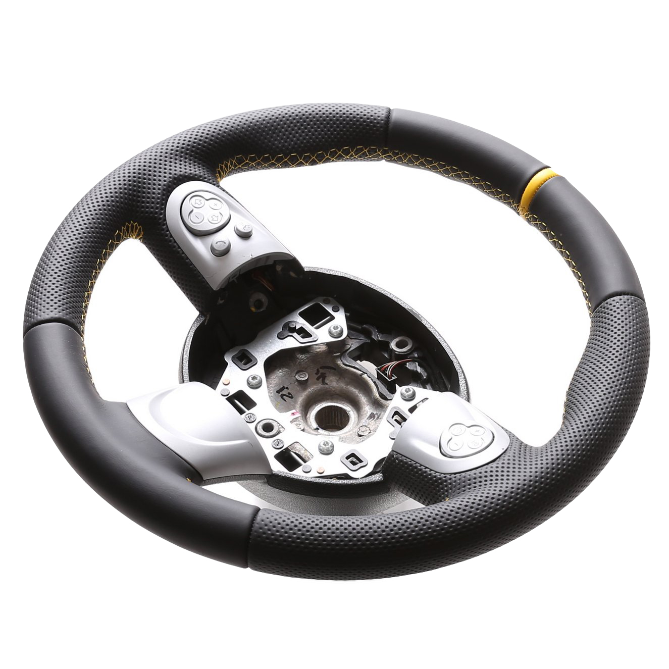 Originalfarbe schwarz, ein Kombibezug aus Nappa und perforiertem Leder, 12 Uhr Markierung gelb Naht gelb