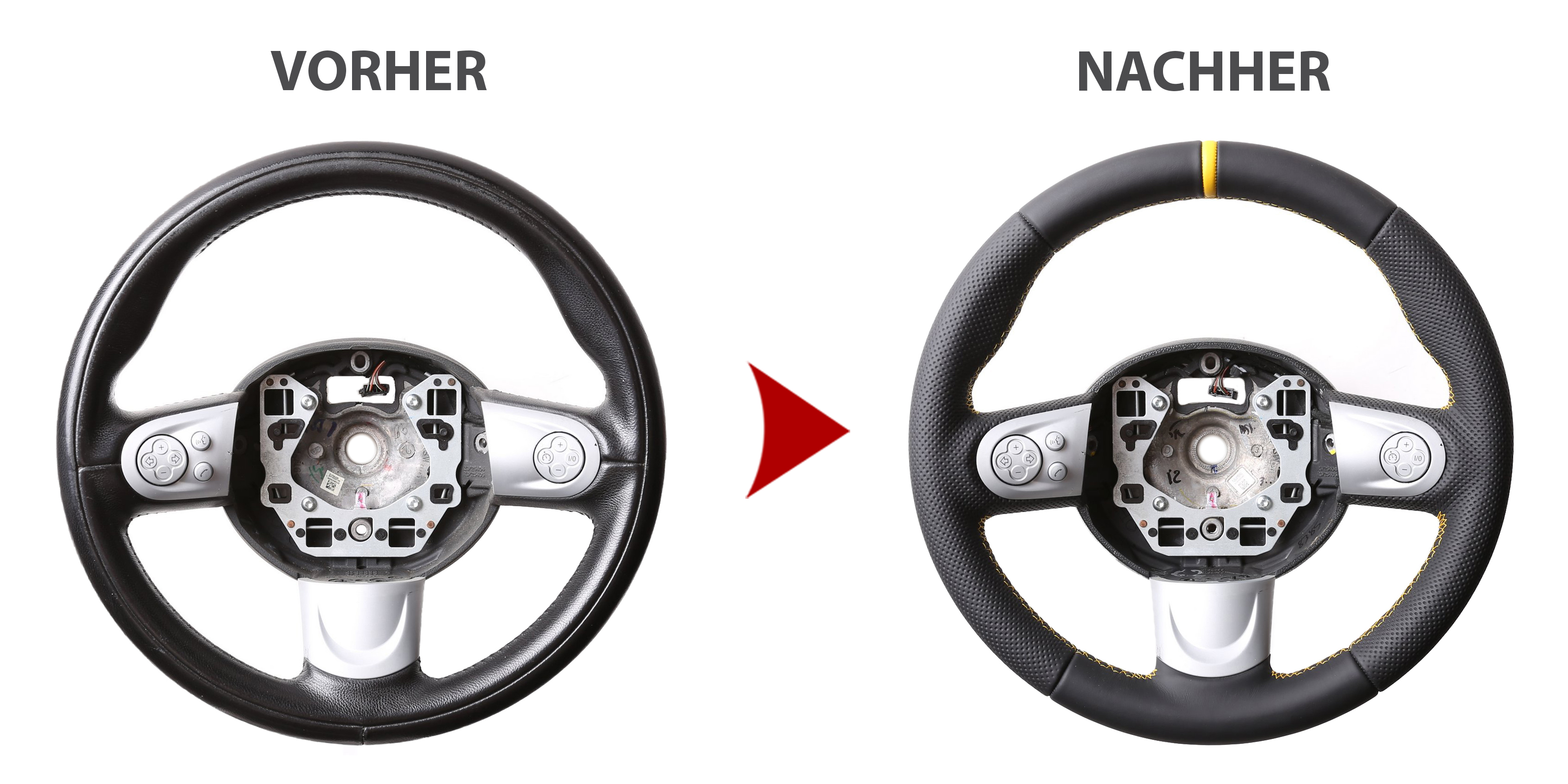 Der Austausch erfolgt ausschließlich gegen ein baugleiches Lenkradmodell. Alle Anbauteile wie Airbag, Multifunktionstasten, Blenden, Schaltwippen oder gar ein Spurhalteassistent übernehmen Sie problemlos von Ihrem Lenkrad. Diese sind nicht im Lieferumfang enthalten.