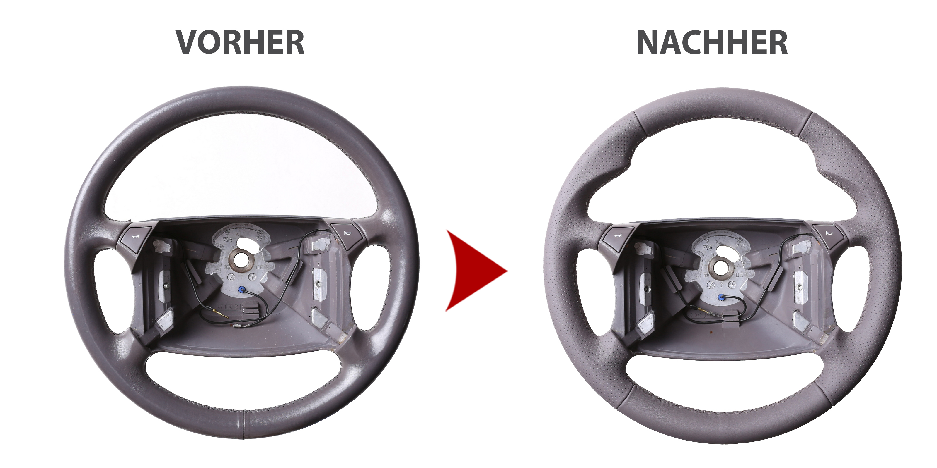 Der Austausch erfolgt ausschließlich gegen ein baugleiches Lenkradmodell. Alle Anbauteile wie Airbag, Multifunktionstasten, Blenden, Schaltwippen oder gar ein Spurhalteassistent übernehmen Sie problemlos von Ihrem Lenkrad. Diese sind nicht im Lieferumfang enthalten.