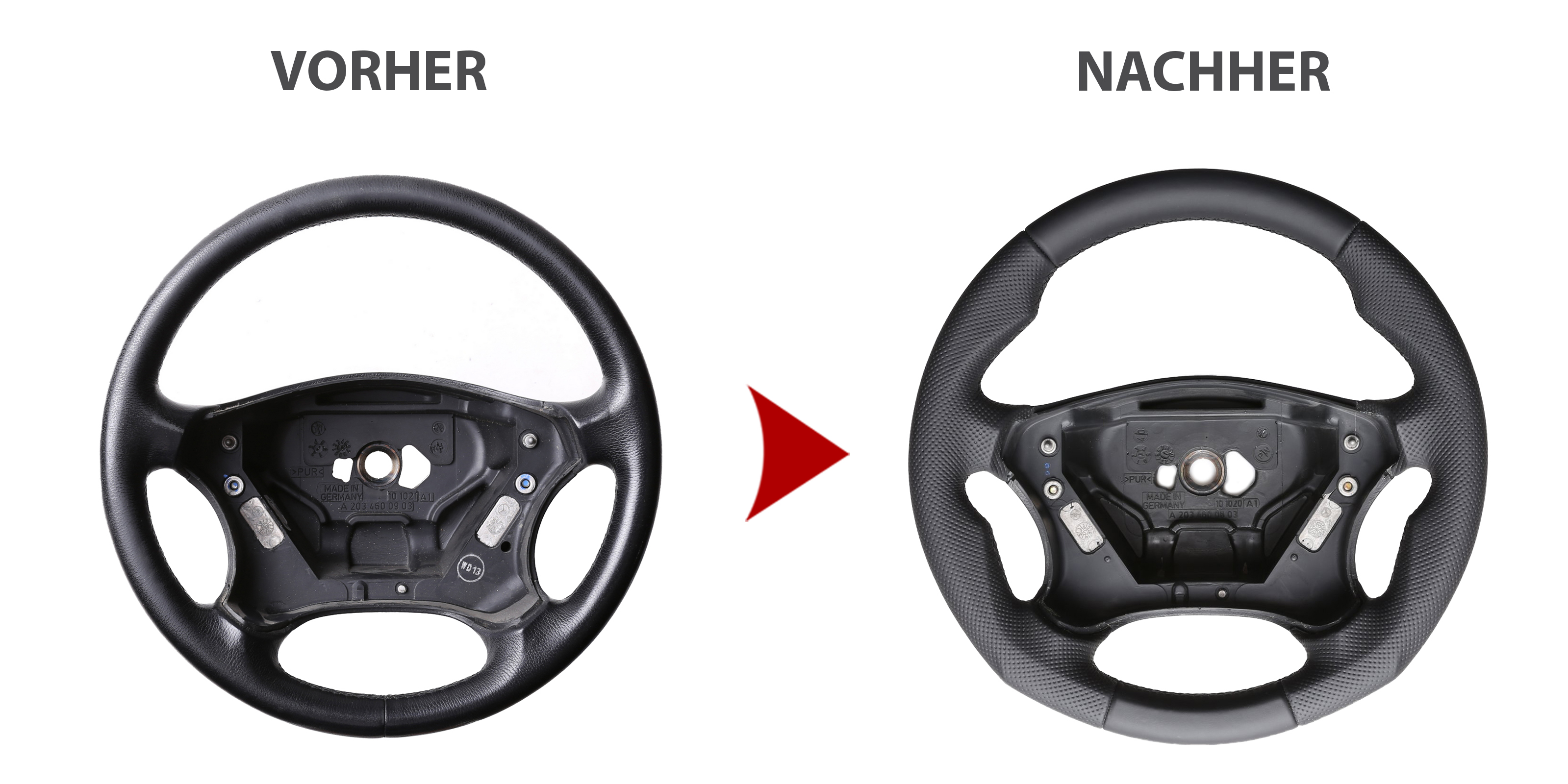 Des Weiteren bieten wir auch den Neubezug Ihres Lenkrades nach Ihren individuellen Vorstellungen bei uns vor Ort an. Sollte es Ihr Lenkradmodell ausnahmsweise nicht in unserem Sortiment geben, dann können wir Ihnen Ihr Lenkrad ausbauen, innerhalb von 4-5 Stunden den Wunschbezug anfertigen und anschließend können Sie wieder nach fachgerechtem Einbau durch uns ohne lange Versandwartezeiten und teure Werkstattbesuche mit Ihrem neu bezogenen Lederlenkrad nach Hause fahren!