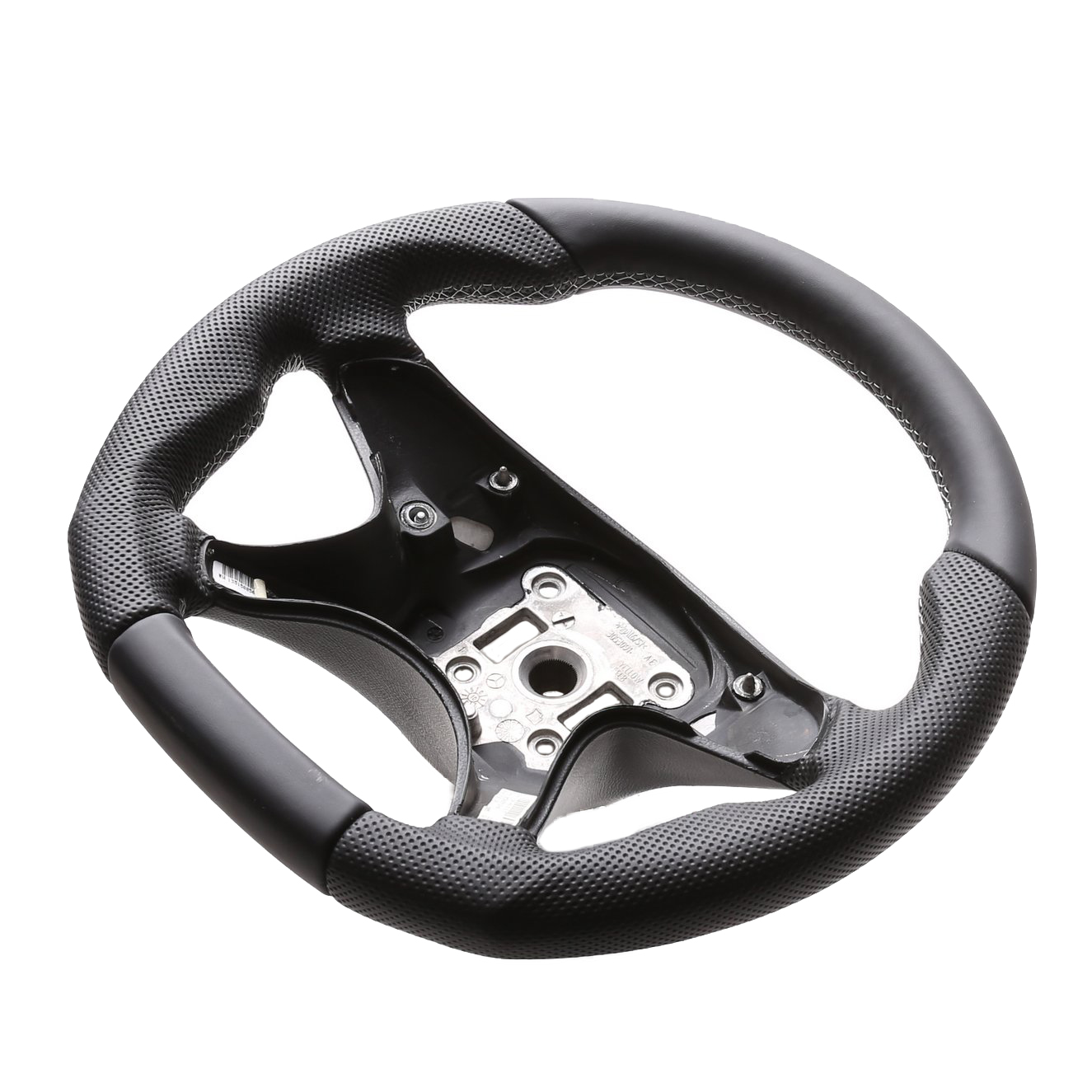 Originalfarbe schwarz, ein Kombibezug aus Mercedes Nappa und perforiertem Leder, Naht silber. Horizontale Trennähte im oberen Bereich.