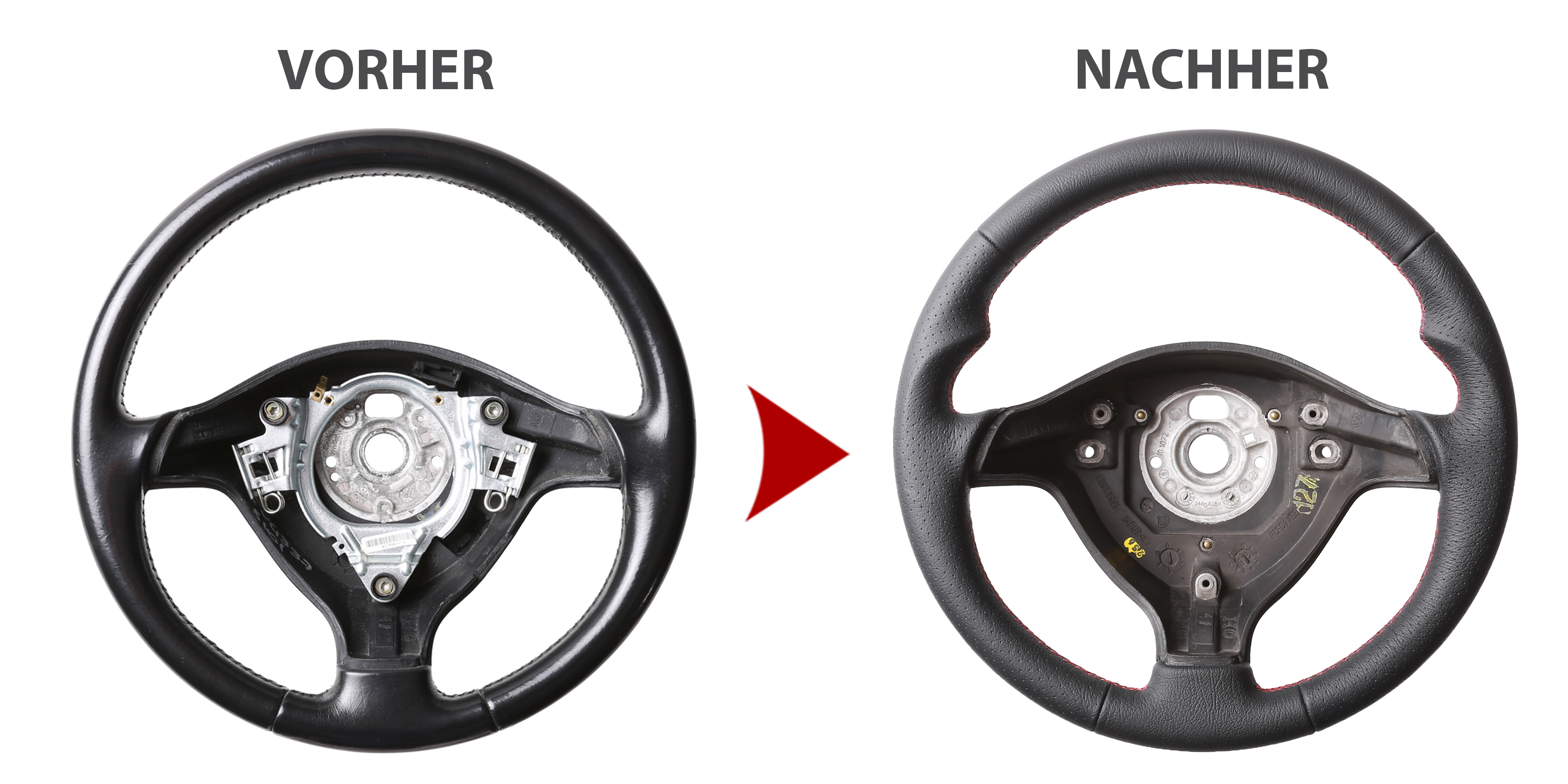 VW Lenkrad Golf 4 Passat 3B 3BG Bora Seat Leon Daumenauflagen Kombibezug genarbt Naht rot