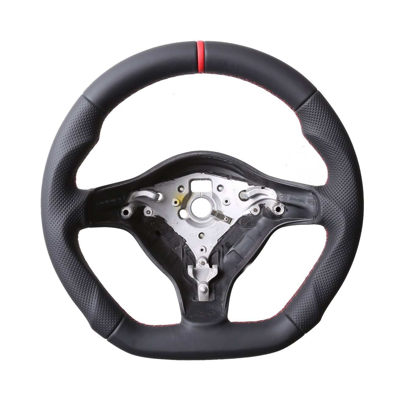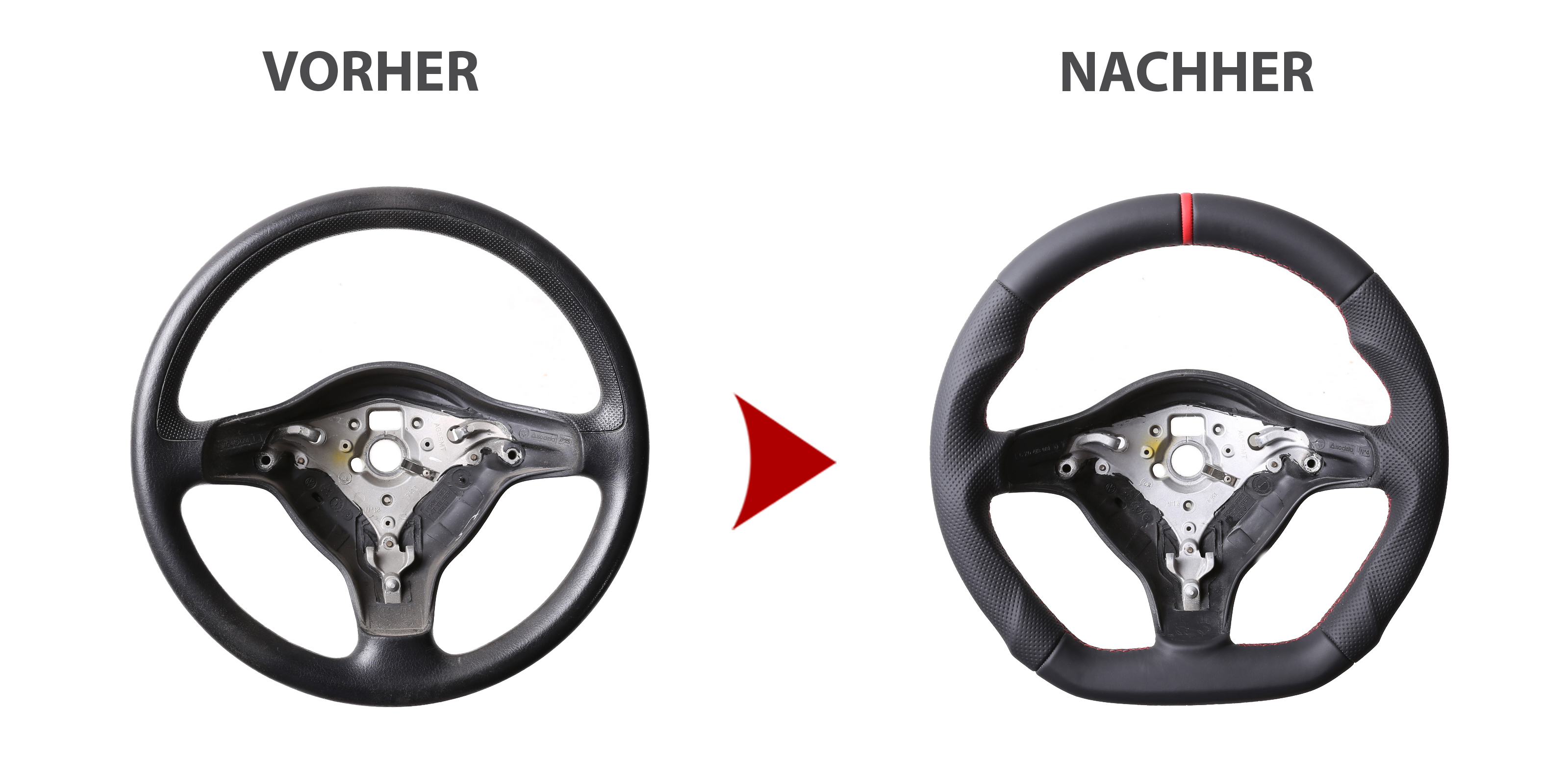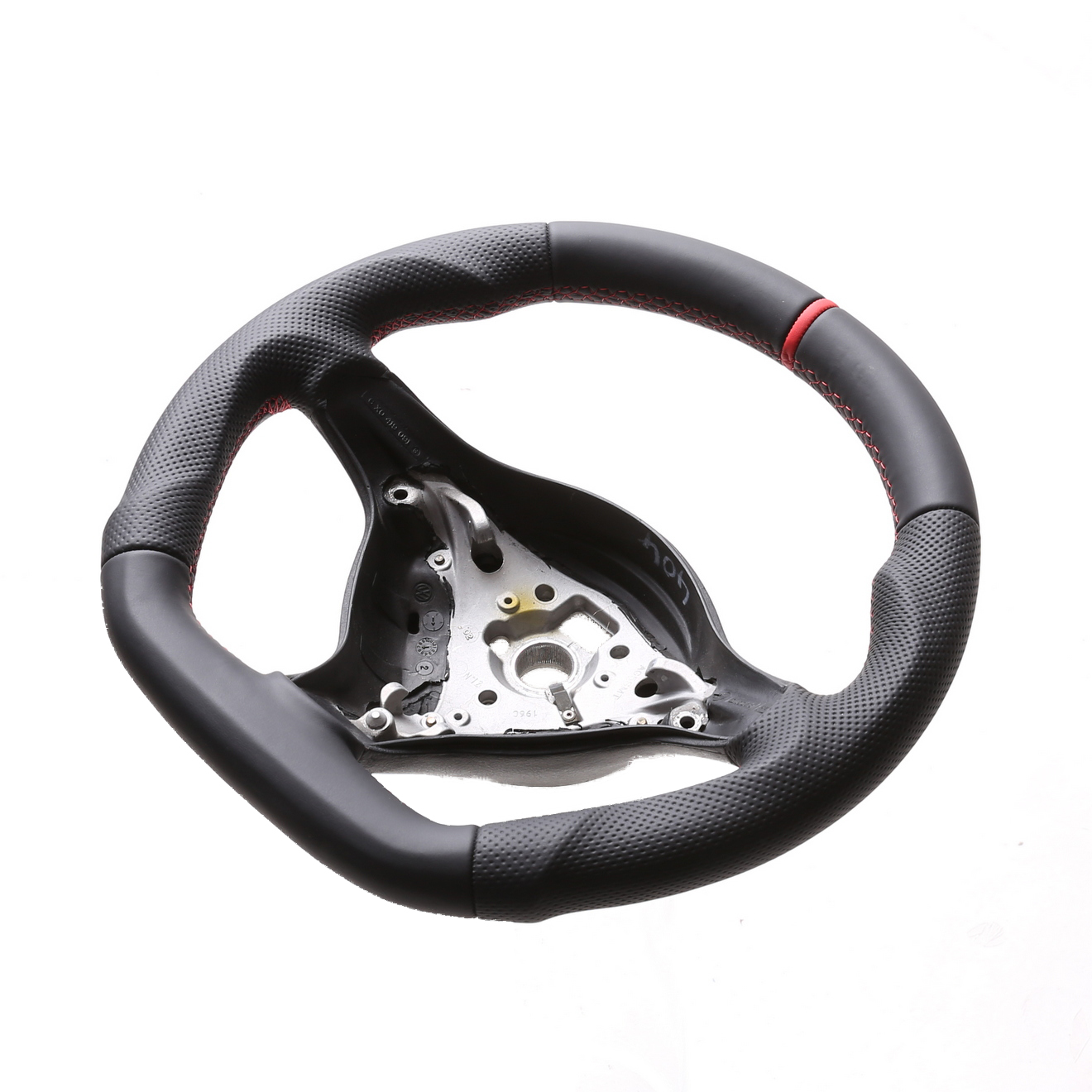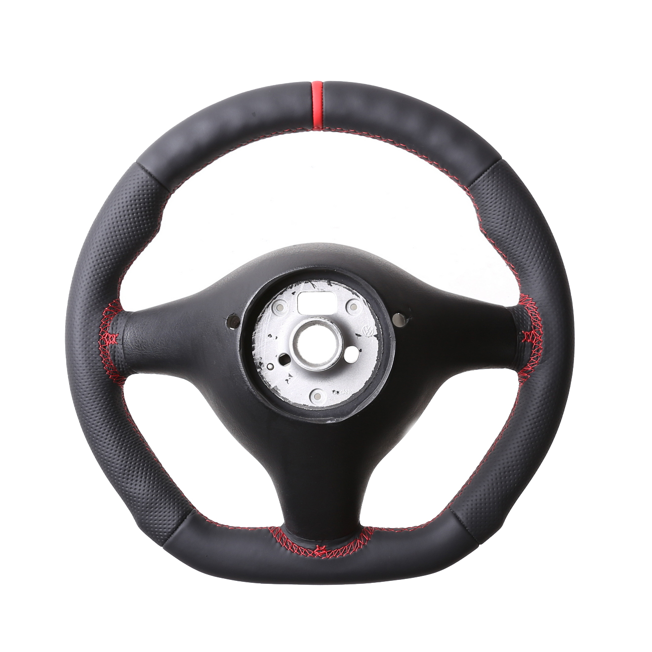Produktinformationen "VW Lenkrad Golf 4 Passat 3B 3BG Seat Leon Abgeflacht Kombibezug 12 Uhr Markierung rot Naht rot"