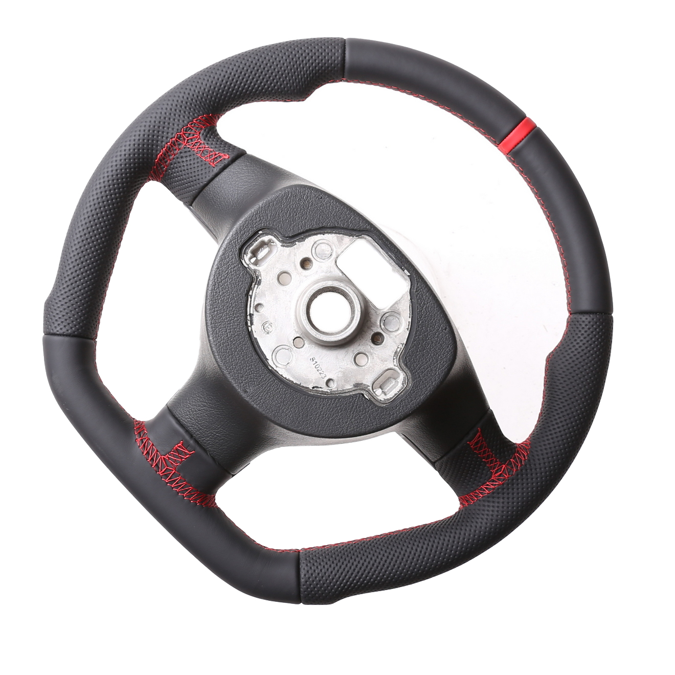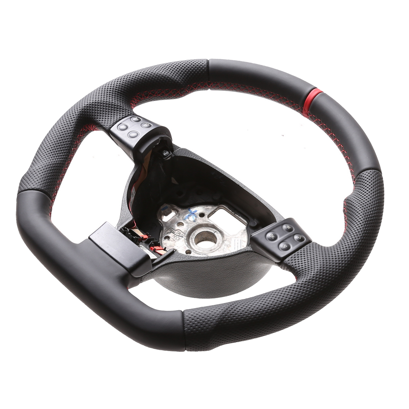 Produktinformationen "VW Lenkrad Golf 5 Touran Polo 9N Passat 3C EOS Abgeflacht Kombibezug 12 Uhr Markierung rot Naht rot"