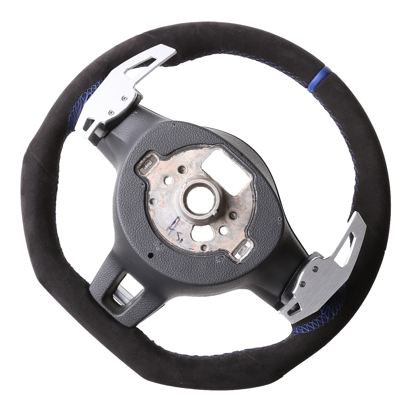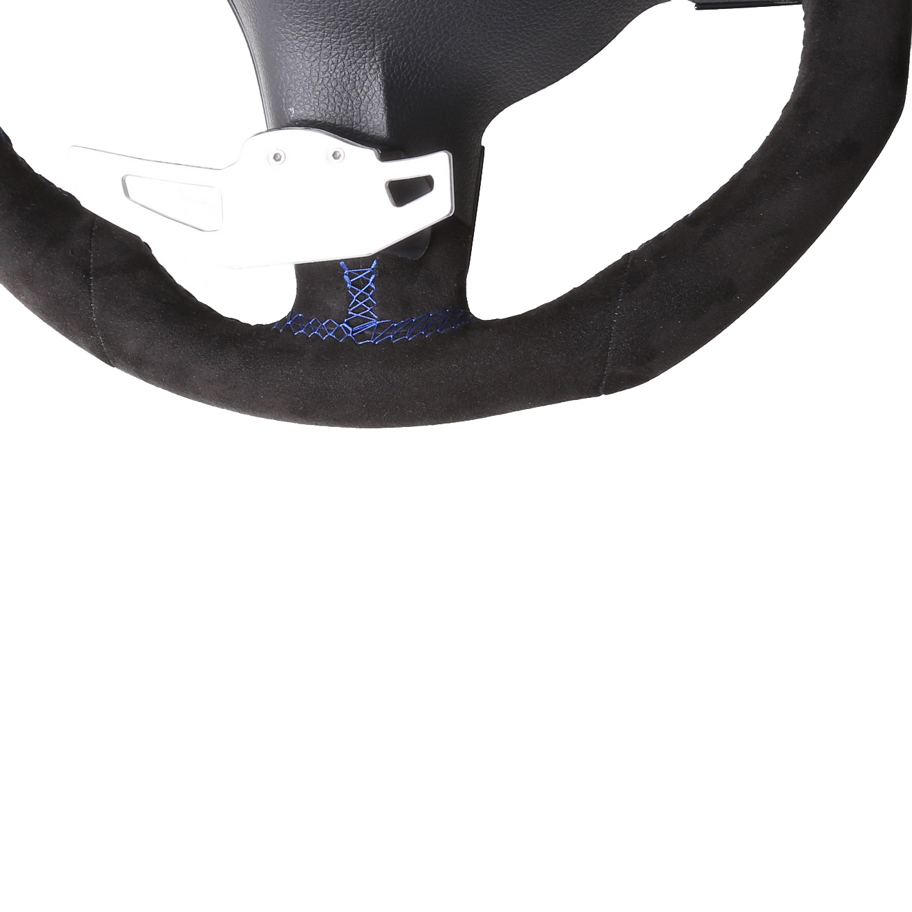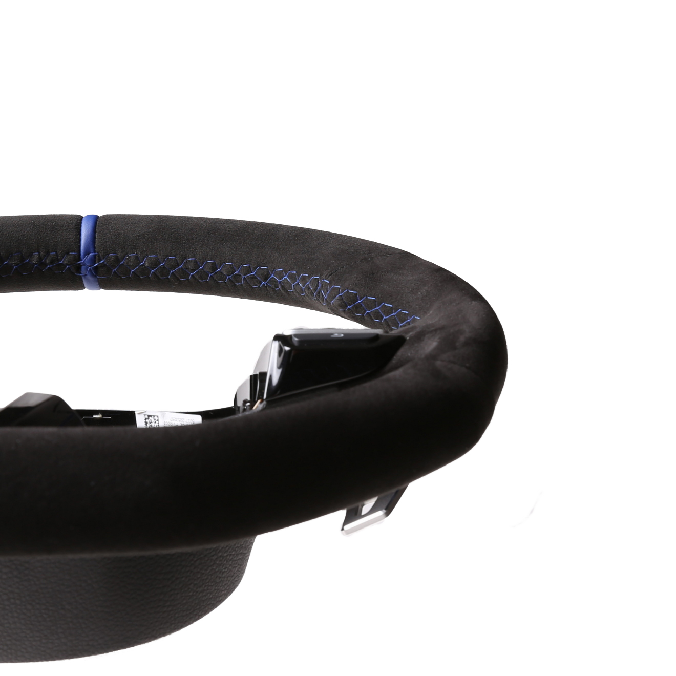 Originalfarbe schwarz, aus Alcantara Leder, 12 Uhr Markierung blau, Naht blau
