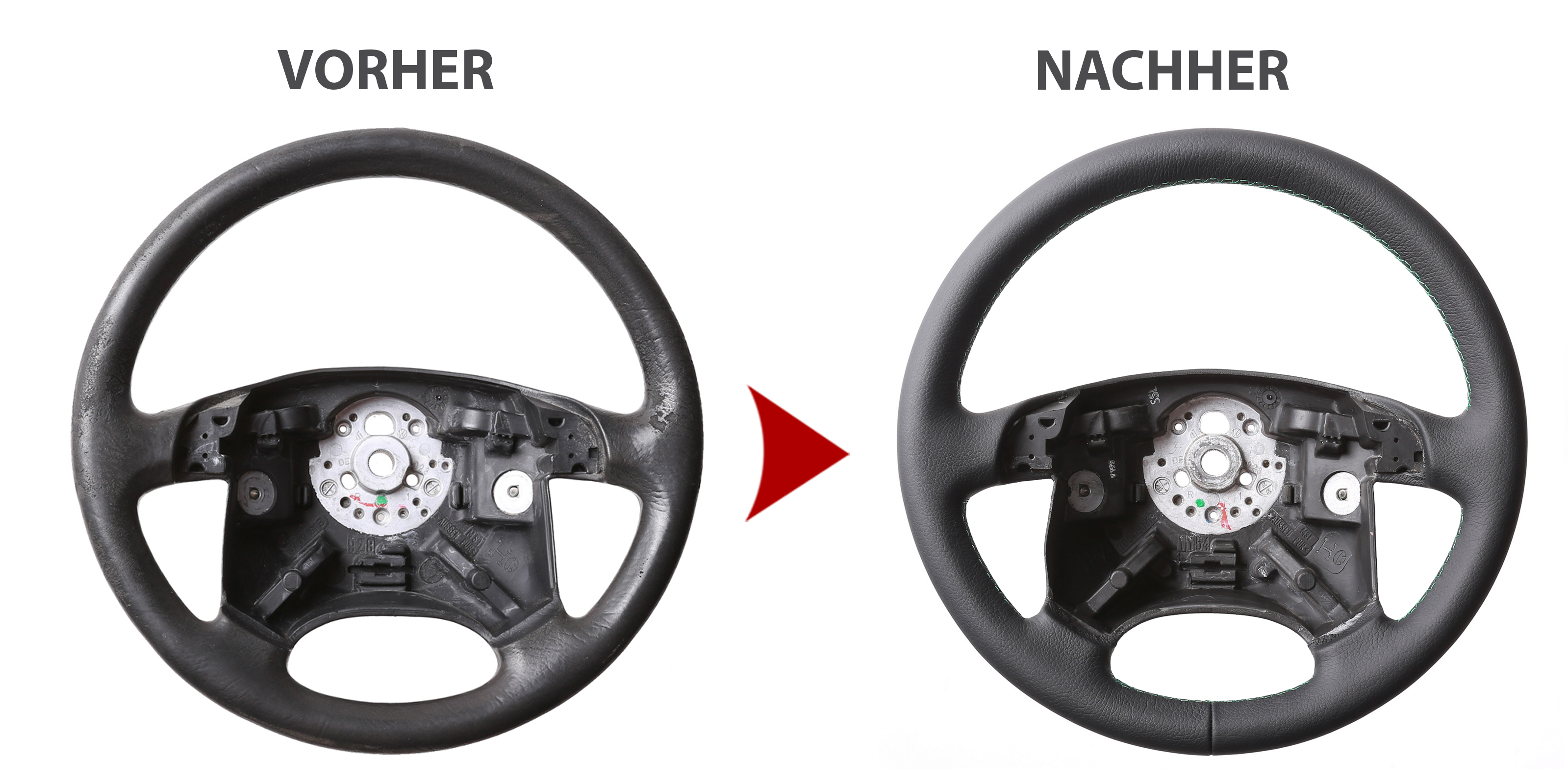 Ob Sie einen einfachen Neu Bezug des Lenkradmodells wünschen oder das Tuning Design oder aber ein abgeflachtes Design, der Preis ist bei allen Varianten gleich. Der Grund: das hohe Alter der Fahrzeuge und dessen Lenkräder. Diese sind sehr abgegriffen und weisen zum größten Teils starke Defekte am Lenkradkranz auf. Dies bedeutet für uns, den gleichen Arbeits,- und Materialaufwand für alles Designs.